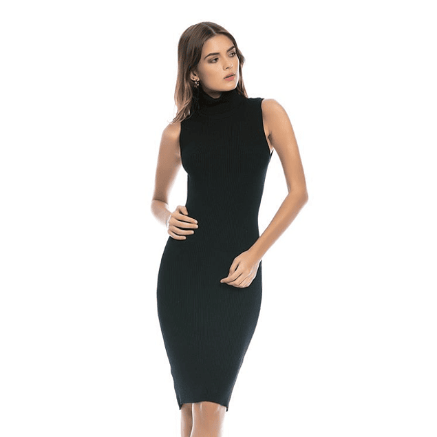 Vestido Corto Ajustado Sin Mangas Cuello Bobo Ideal Para Otoño Invierno Tallas Plus Kadrihel Modelo I051