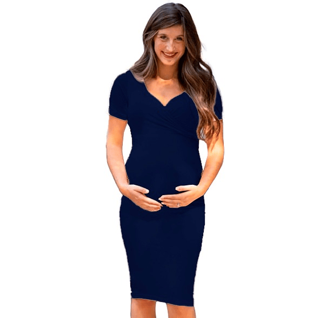 Vestido de Embarazada Ajustado Cruzado en Busto Burdeo. Tallas Plus Kadrihel Modelo E034
