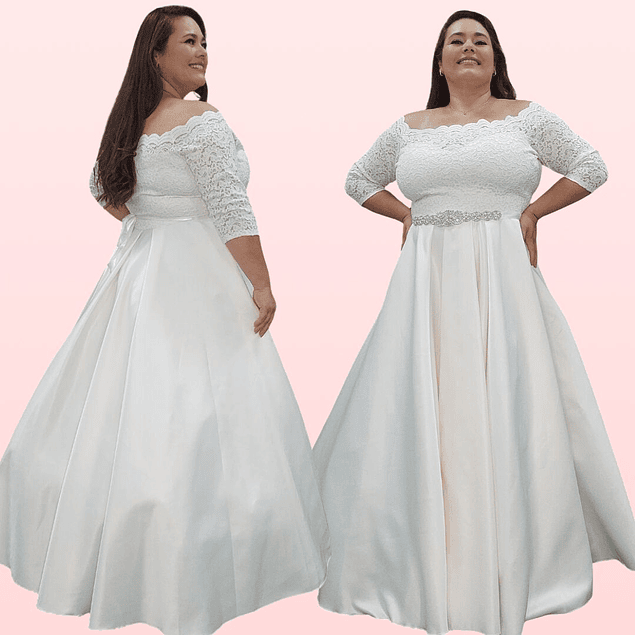 VESTIDO DE NOVIA LARGO MARCA KADRIHEL PLUS SIZE BODA MATRIMONIO MOD-SN81 (NO INCLUYE CINTURON )