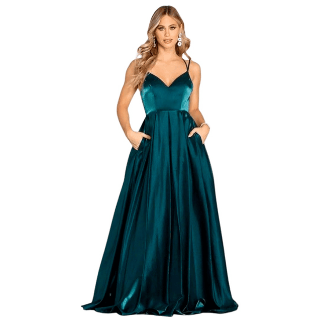 Vestido Largo con Escote Sexy en Busto, Trenzado en Espalda Falda Larga con Bolsillos Ideal Fiesta Gala Graduación Tallas Pluss Kadrihel (G069)