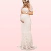 Vestido Sirena De Encaje Embarazada Ideal Para Boda Matrimonio Baby Shower. Tallas Plus Kadrihel Modelo E016