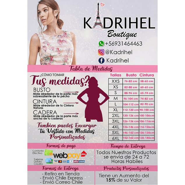 En KADRIHEL BOUTIQUE trabajamos con tallas desde 2XS A 6XL.