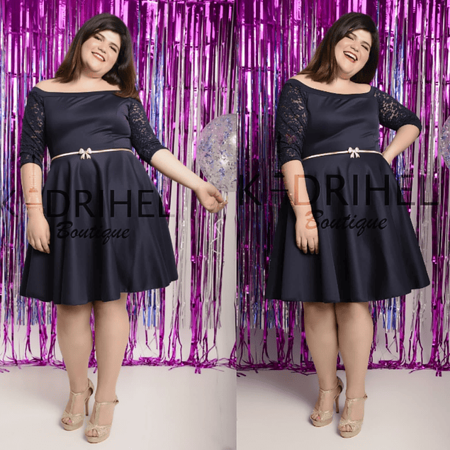 Vestidos de Fiesta Casuales Acampanados Azul Marino Tallas Plus Kadrihel (NO INCLUYE CINTURÓN)